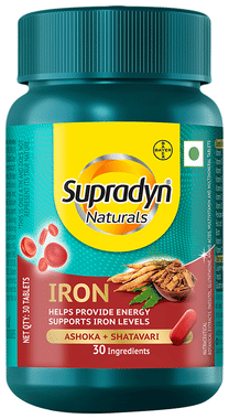 Supradyn Naturals with 3X Iron, Ashoka and Shatavari | for Energy | Multivitamin Tablet (30 Each)