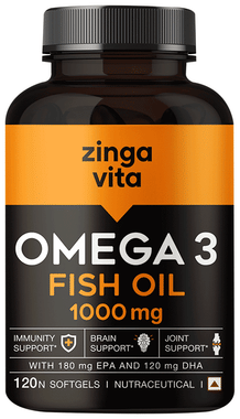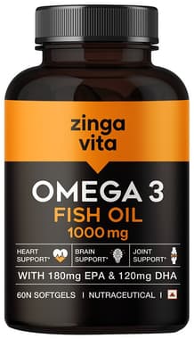 Zingavita Omega 3 Fish Oil 1000mg Soft Gelatin Capsule with EPA & DHA | For Heart, Brain & Joint Health |