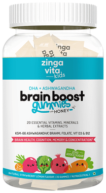 Zingavita DHA Brain Boost Gummies with Honey for Kids (2+ years) Strawberry Lemon