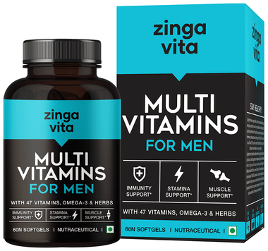 Zingavita Multivitamins Softgels for Men with Vitamins, Minerals, Omega 3 & Herbs | For Immunity, Stamina & Muscle Support (60 Each)