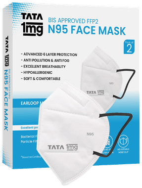 Tata 1mg BIS Approved FFP2 N95 Mask White - Ear Loop, Premium Face Mask 6 Layers