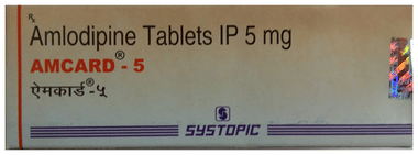 Amcard 5 Tablet belongs to a class of medicines known as calcium channel blockers. It is used to treat high blood pressure (hypertension) and prevent angina (heart-related chest pain). It lowers blood pressure and reduces the heart's workload, which helps prevent heart attacks and strokes.