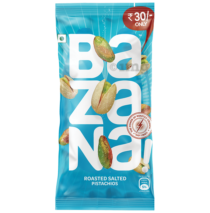 Bazana Roasted Salted Pistachios is a good source of protein, dietary fibre and helps to nourish the body. It is useful in lowering bad cholesterol content and helps fight the signs of premature ageing of skin. It also facilitates the process of weight loss.
