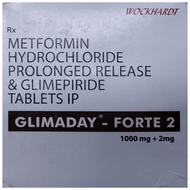 Glimaday-Forte 2 Tablet PR is a combination medicine that increases the amount of insulin your body produces (in the pancreas). The insulin then works to lower your blood glucose level. It is usually taken once a day. You should keep taking it for as long as it is prescribed.