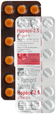 Hopace 2.5 Tablet is an angiotensin converting enzyme (ACE) inhibitor. It works by reducing stress on the heart and relaxing blood vessel so that blood flows more smoothly and the heart can pump blood more efficiently.
