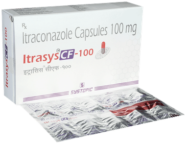 Itrasys CF 100 Capsule is an antifungal medicine. It is used to treat infections in different parts of the body caused by fungi. It works by killing and stopping the growth of fungi. This provides relief from various symptoms caused by the infection and speeds up the healing process. You should keep taking the medicine until you complete the dose even if you get better. This will prevent the infection from returning.