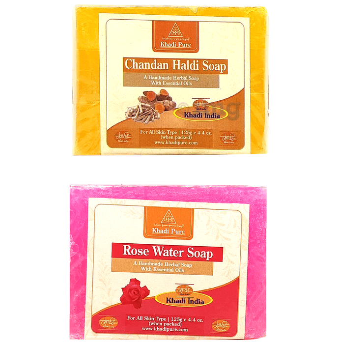 Information about Khadi Pure Combo Pack of Chandan Haldi Soap & Rose Water Soap (125gm Each)