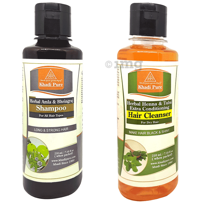 Information about Khadi Pure Combo Pack of Herbal Amla & Bhringraj Shampoo & Herbal Heena & Tulsi Extra Conditioning Hair Cleanser (210ml Each)