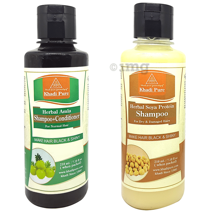 Information about Khadi Pure Combo Pack of Herbal Amla Shampoo+Conditioner & Herbal Soya Protein Shampoo (210ml Each)