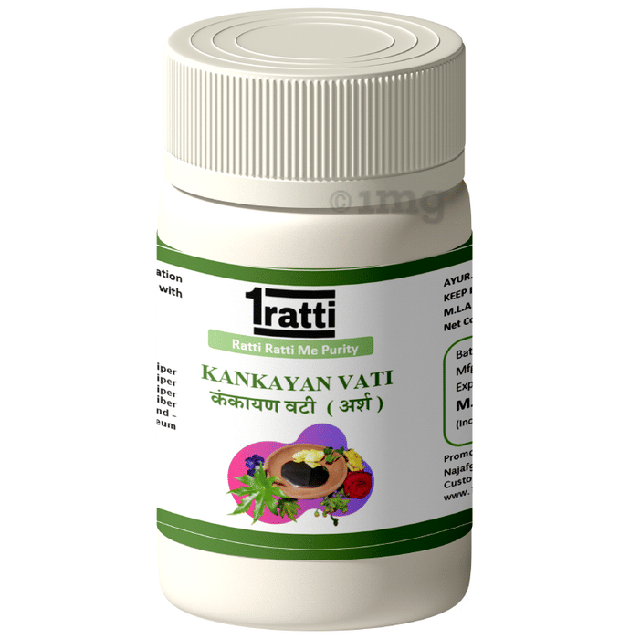 1ratti Kankayan Vati is an ayurvedic formulation that can be used in the treatment of piles. It can provide relief from indigestion and constipation. It may also relieve discomfort caused by wearing tight clothes or riding on vehicles for long periods. It aids in assisting the proper functioning of the digestive system.