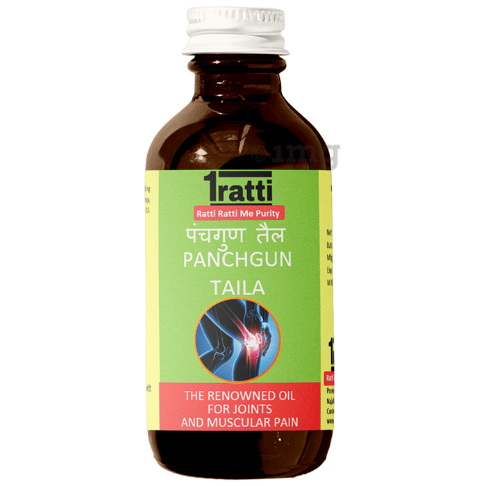 1Ratti Panchguna Taila is an ayurvedic oil enriched with the goodness of anti-inflammatory herbal extracts. It also possesses antiseptic property that is beneficial against wounds, cuts and burns. This oil helps deal with the symptoms of rheumatoid arthritis and osteoarthritis. Massaging with this oil helps relieves pain and swelling and improves joint movements. It is effective in getting rid of pain in sprain and reduces joint pain, and allows easy movements. It is very suitable for earaches; dropping little drops of this oil helps lessen the ear's pain.