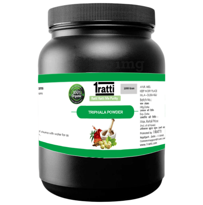 1Ratti triphala churna is an ayurvedic formulation for indigestion with high laxative properties and is known for its colon cleansing and detoxifying actions. It is a rich vitamin C, calcium, iron, and zinc source. The formula is beneficial for digestive problems and helps maintain overall health by harmonising digestive functions and cleansing the stomach.