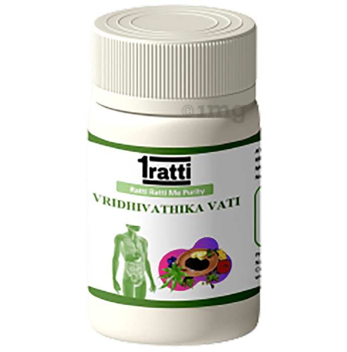 1Ratti Vridhivadhika Vati is an ayurvedic herbo-mineral tablet formulation enriched with indigenous herbal and organic mineral extracts. It is used for inguinal hernia, intestinal hernia and abnormal cell growth. It also improves digestion and enables better absorption of nutrients in the body.