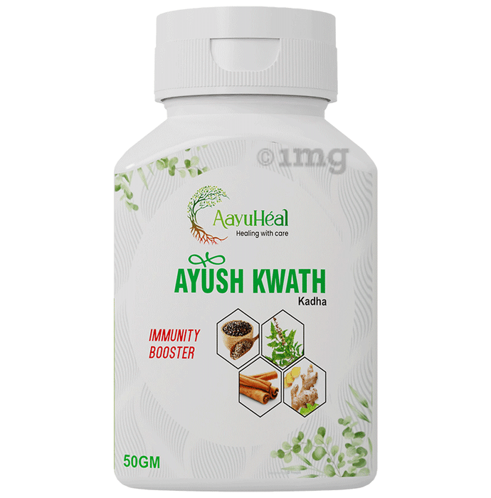 Aayuheal AyushKwath Powder is an ayurvedic medicine that helps to boost immunity. It has anti bacterial properties that is beneficial for cold or cough. It controls the blood sugar level and is useful for chronic fever.