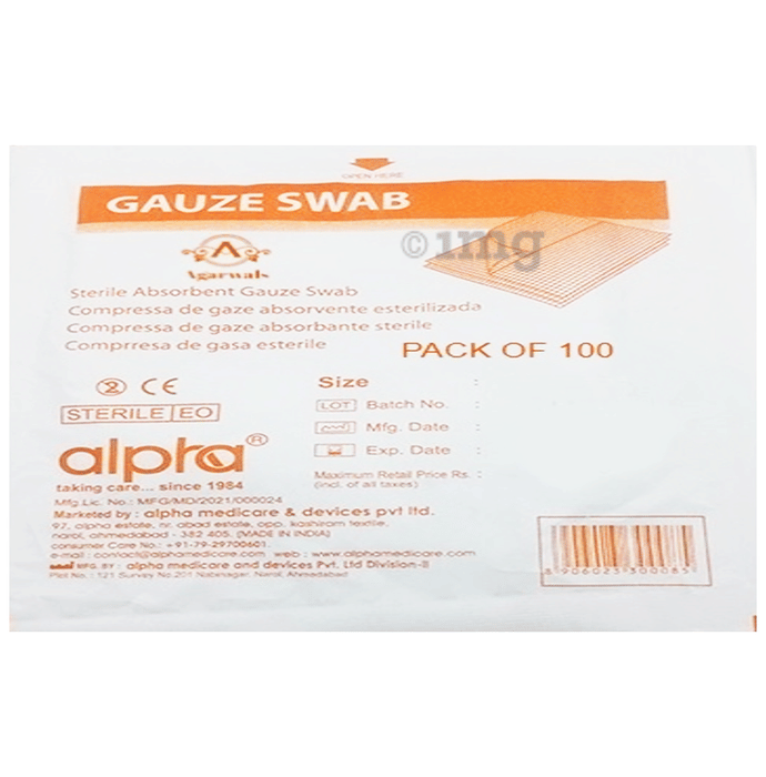 Information about Agarwals Alpha Absorbent Gauze Swabs Sterile 10cm x 10cm x 12ply