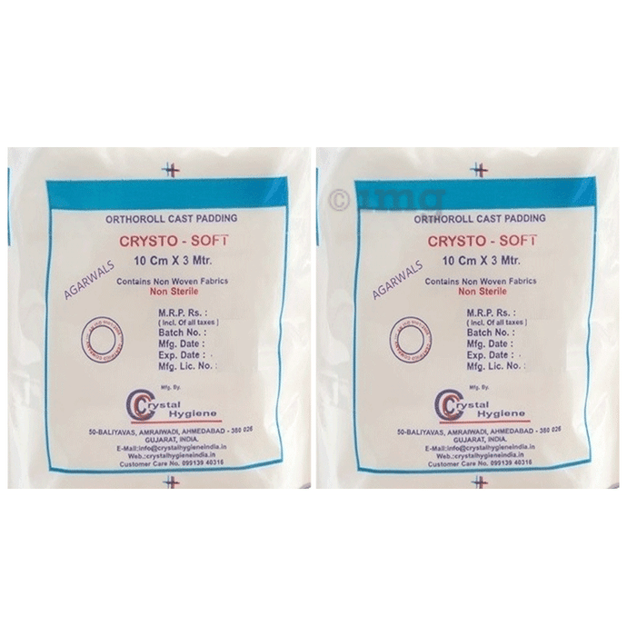 Agarwals Crystal Hygiene Crysto Soft Orthoroll Cast Padding are orthopaedist rolls widely used in applications related to orthopaedic surgery. It is made of soft fibers which are known for reducing skin maceration. It absorbs exudates and sweat. When used, it acts as a cushion between bones and POP to lead to rapid recovery.