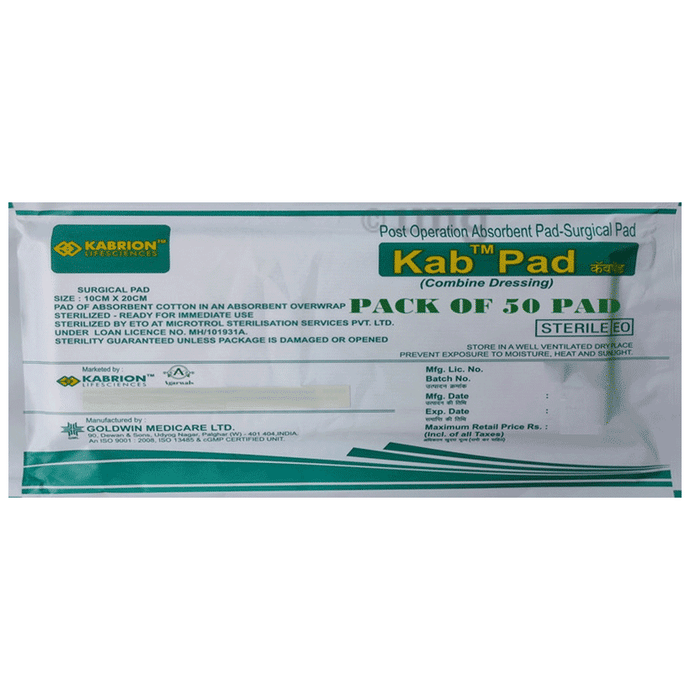 A licensed vendor partner from your nearest location will deliver Agarwals Kabiron KAB PAD Sterile Combine Dressing Surgical Pad 10cm x 20cm. Once the pharmacy accepts your order, the details of the pharmacy will be shared with you.