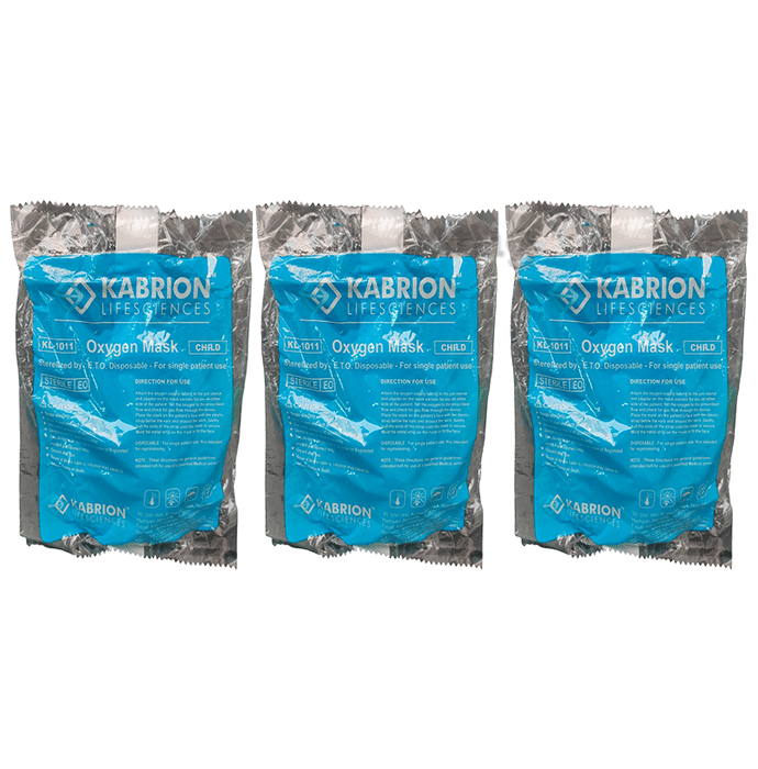 Agarwals Kabrion Oxygen Face Mask Child aids the acquisition of oxygen from sources such as an oxygen cylinder, an oxygen concentrator or an oxygen hose. This oxygen mask and tubing set is compatible with all machines and cylinders. It is ideal for kids.