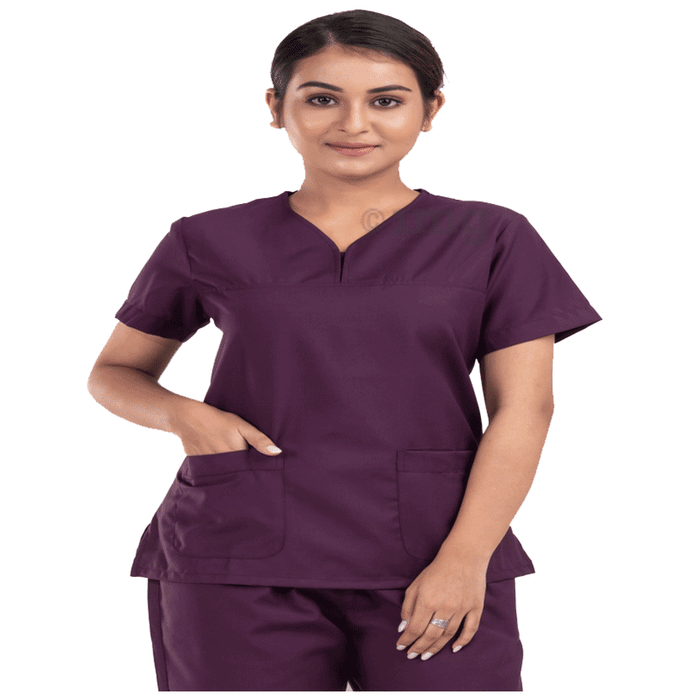 Agarwals Unisex Wine V-Neck Scrub Suit Top and Bottom Uniform XXXL