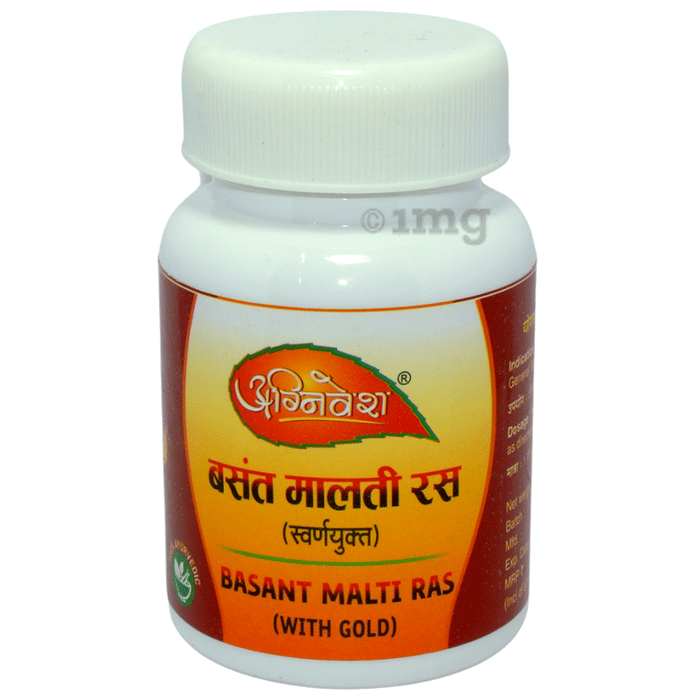 Agnivesh Basant Malti Ras (with Gold) Tablet helps manage chronic fever and general debility. Regular consumption helps manage several health-related concerns.
