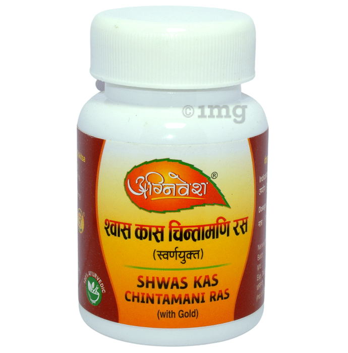 Agnivesh Shwas Kas Chintamani Ras (with Gold) Tablet helps manage chronic and acute asthma. It helps relieve cough and breathlessness.