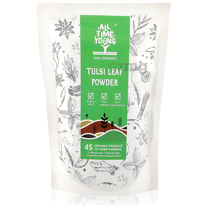 All Time Young Tulsi Leaf Powder is enriched with the goodness of Holy Basil. It is known as the ββMother Medicine of Natureββ because of many health benefits that it has.It has Kapha-balancing properties.It has anti-inflammatory and anti-allergic properties.It not only boosts immunity but also improves digestion.It protects from flu and provides relief from stress.