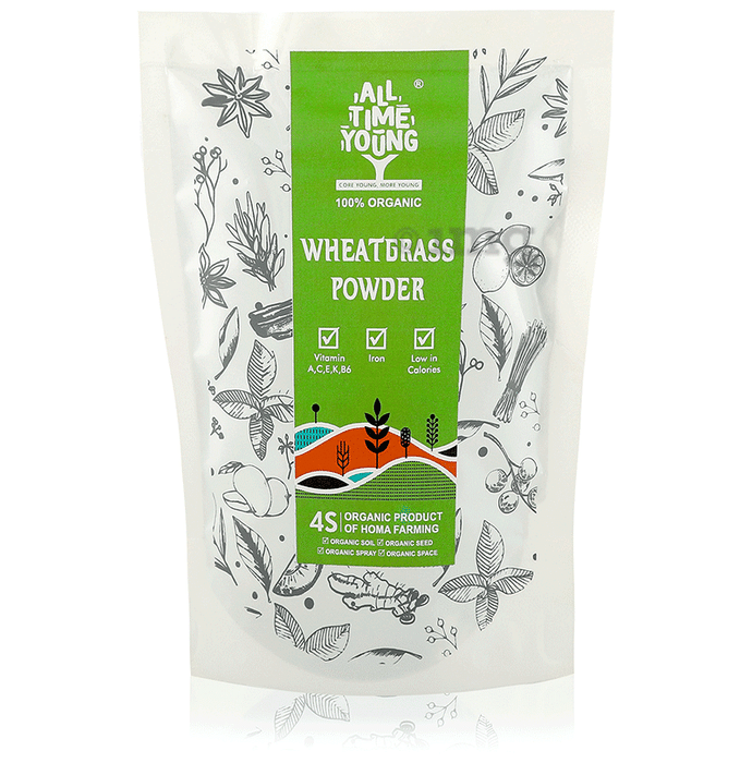 All Time Young Wheatgrass Powder is a dietary supplement made from the dried leaves of wheatgrass, which is a young wheat plant. It is rich in vitamins, minerals, antioxidants, and chlorophyll.
