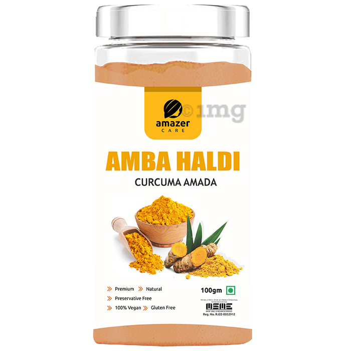 Amazer Care Amba Haldi can help boost the Immune system and protect against infections and diseases. It has been used traditionally to improve digestive function and treat digestive problems like bloating, constipation, and indigestion. Amba Haldi has antioxidant properties, which means it can help protect the body against damage from free radicals and oxidative stress. It has been used for face pack and it can help improve the appearance of the skin, reduce acne and dark spots, and improve overall skin health. It can be used in cooking as a spice and colorant, just like regular turmeric in dishes like curries, soups, and stews. It can be steeped in hot water to make a tea. This is a traditional way of consuming Amba Haldi in India and is believed to have health benefits.