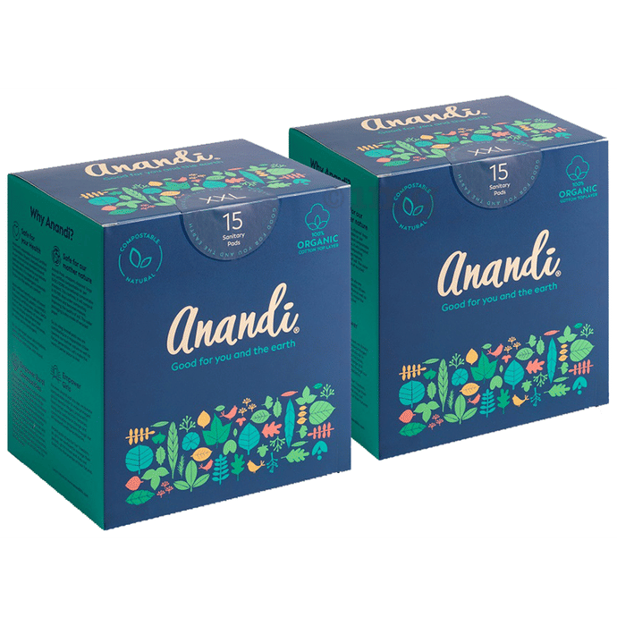 Anandi pads are made with carefully sourced all bio-based materials and are extremely gentle on delicate intimate skin. Anandi pads introduce the industry's 1st plant-based Bio-Superabsorbent for superior absorbency and don’t cause rash or irritation. The GOTS Certified 100% organic cotton top layer with unique wetness-reducing treatment gives a super soft and comfortable period experience. Naturally Breathable back layer allows air to pass through and provides all-day comfort. Ultra-thin pads with multi-layer protection and side wall for added security. Anandi pads are free of harmful chemicals and fragrances. Anandi is India’s 1st and only certified 100% compostable and biodegradable sanitary pads. Used Anandi pads become part of the soil and manure within 3-6 months in composting conditions. Anandi pads come with certified compostable disposal bags with red stickers for mindful and hygienic disposal of the used pads. The pad boxes are made with recycled paper, and their packaging is free of plastics.Note: For every Anandi pad you use, Anandi Pads donate compostable pads to underprivileged girls in remote villages along with behavioural and communication programs through the #FreedomFromShame initiative.