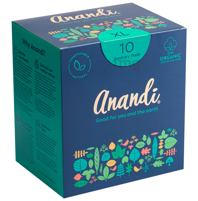 Anandi pads are made with carefully sourced all bio-based materials and are extremely gentle on delicate intimate skin. Anandi pads introduce the industry's 1st plant-based Bio-Superabsorbent for superior absorbency and don’t cause rash or irritation. The GOTS Certified 100% organic cotton top layer with unique wetness-reducing treatment gives a super soft and comfortable period experience. Naturally Breathable back layer allows air to pass through and provides all-day comfort. Ultra-thin pads with multi-layer protection and side wall for added security. Anandi pads are free of harmful chemicals and fragrances. Anandi is India’s 1st and only certified 100% compostable and biodegradable sanitary pads. Used Anandi pads become part of the soil and manure within 3-6 months in composting conditions. Anandi pads come with certified compostable disposal bags with red stickers for mindful and hygienic disposal of the used pads. The pad boxes are made with recycled paper, and their packaging is free of plastics.