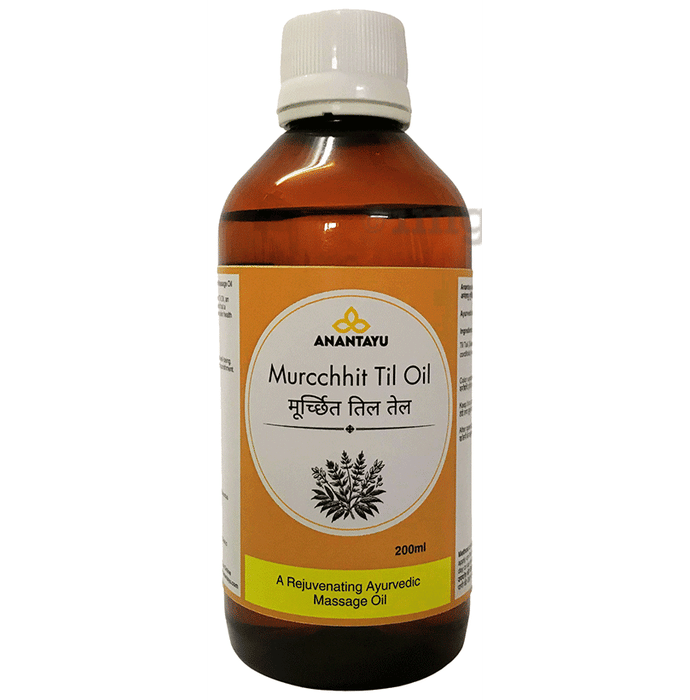 Embrace the rejuvenating benefits of Anantayu Til Tel (Murchhit), an Ayurvedic masterpiece. This massage oil is not just a blend but a symphony of nature's gifts, meticulously crafted to nurture skin health and vitality. It helps with minor joint issues and is also good for headaches and stomach aches.