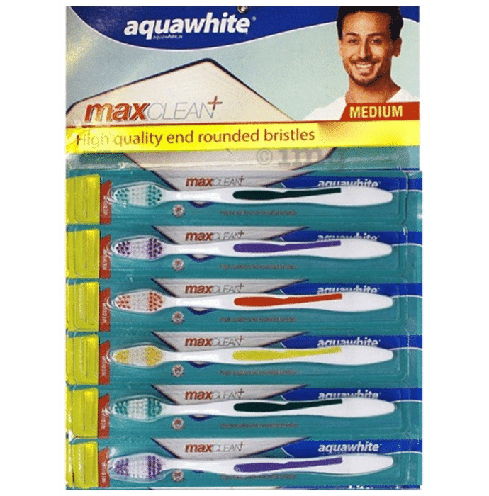 Aquawhite Max Clean Plus Toothbrush comes with medium bristles that help remove plaque and stains.