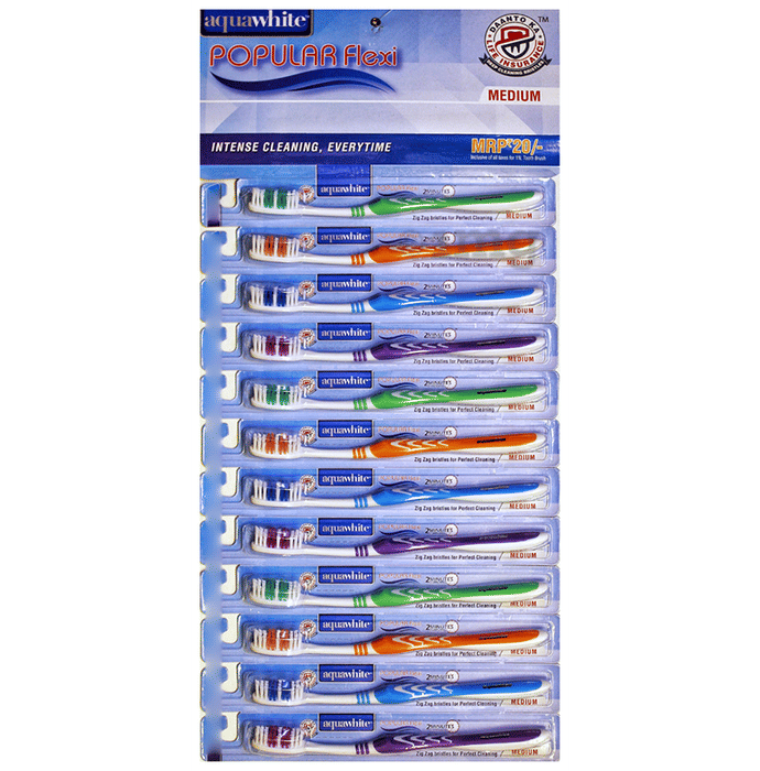 Aquawhite Popular Flexi Toothbrush is a toothbrush with an innovative zig-zag shape that helps clean the teeth effectively. The flexible neck design absorbs excess pressure and allows an easy swivel to clean every corner of the mouth.