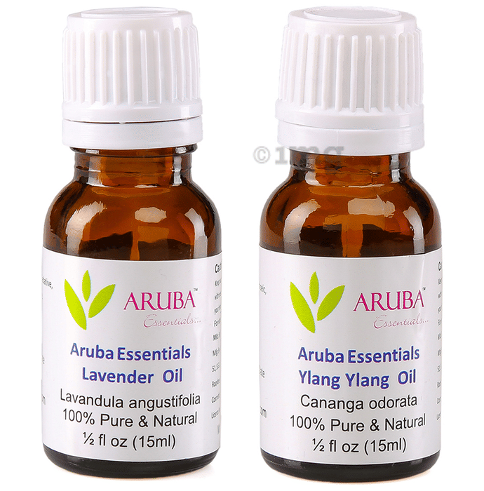 Aruba Essentials Combo Pack of Lavender Oil & Ylang Ylang Oil (15ml Each)helps eliminate nervous tension, relieve pain anddisinfect the scalp and skin.It enhance blood circulation, and treat respiratory problems useful in aromatherapy and many aromatic preparations and combinations. It induces sleep and relieves stress & anxiety. Helps in treating acne and provides relief from pain in the joints.