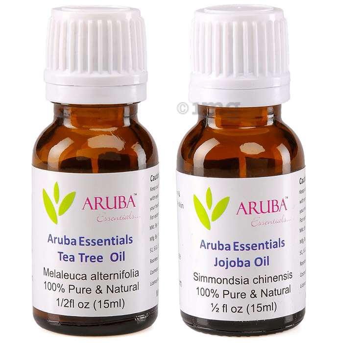Aruba Essentials Combo Pack of Tea Tree Oil & Jojoba Oil is a combo product which works as a good skin conditioner for all skin types. Tea tree is effective for dryness and dandruff and can be massaged into the hair and scalp. Jojoba is very similar to the sebum produced by our own skin. It is particularly beneficial as a facial and body oil. It hydrates and moisturises the skin.