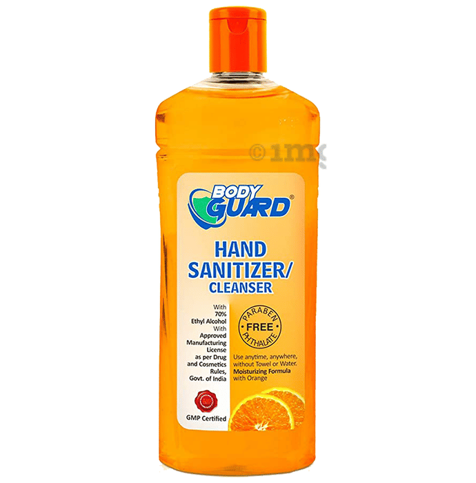 Aryanveda Body Guard Hand Sanitizer/Cleanser with Orange Fragrance consists of 70% ethyl alcohol and has the fragrance of orange, which is the key ingredient of the sanitizer. The sanitizer is free from paraben and phthalates. It does not contain any other chemicals which can cause any rashes or irritation on the skin.
