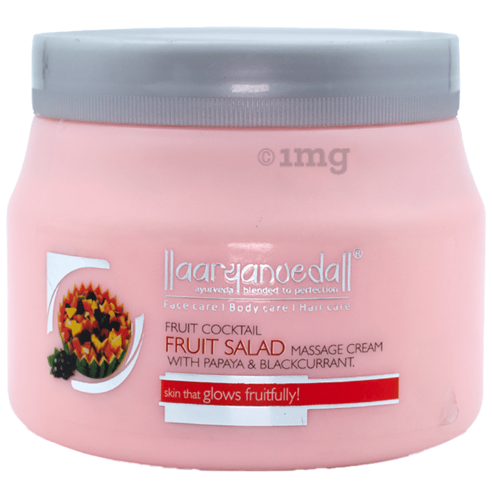 Aryanveda Fruit Salad Massage Cream contains a blend of natural elements that help in restoring the lost hydration from the skin. It gets easily absorbed in your skin and locks in moisture. Papaya helps in removing dirt and dead cells from the skin, whereas blackcurrant is rich in vitamin C which controls the formation of sebum and helps in skin elasticity. This cream helps in promoting healthy skin by reducing the marks of acne and blemishes. It brightens your skin and protects it from any further damage. It is skin-friendly as it contains only natural ingredients and is devoid of any harmful chemicals.