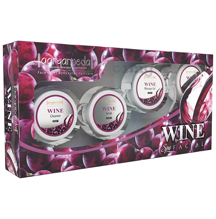 Aryanveda Wine Spa Facial Kit helps to revitalise and rejuvenate the skin and gives you a radiant glow. It contains the goodness of raspberries and blueberries, whose properties enrich your skin with adequate vitamins and minerals. It gently removes dirt and dead skin cells and helps provide hydration to your skin. The kit consists of a wine cleansing toner, wine scrub, wine gel, wine massage cream, and, lastly, the wine face pack.