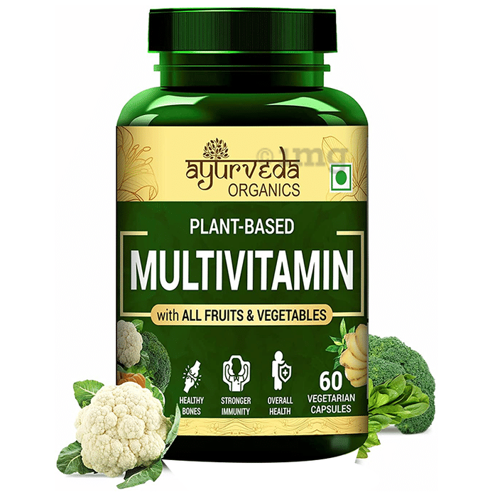 Ayurveda Organics Plant-Based Multivitamin Vegetarian Capsule is a formulation of vitamins and minerals sourced from whole organic foods, primarily beneficial for women. It can enhance immunity, and with focused ingredients for women, these multivitamin capsules can improve energy and maintain bone health. Furthermore, its blend of essential vitamins such as vitamin C and D can support the good health of vital organs, including the brain, liver, and nervous system.
