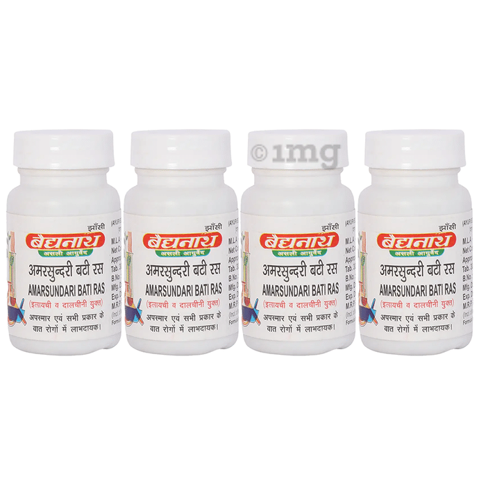 Baidyanath (Jhansi) Amarsundari Bati Ras (40 Each) is a herbomineral Ayurvedic medicine in tablet form. It is indicated to get relief of about eighty Vata rog. The formulation is helpful for multiple sclerosis and helps to maintain mental wellbeing.