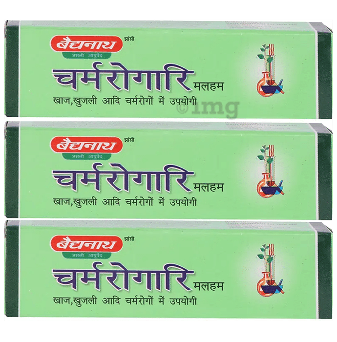 Baidyanath (Jhansi) Charmrogari Ointment (15gm Each) is a herbal medicine which is beneficial, it is used in scabies, ulcers and other skin diseases. Effective in allergic skin conditions, fungal and bacterial infections and eczema.
