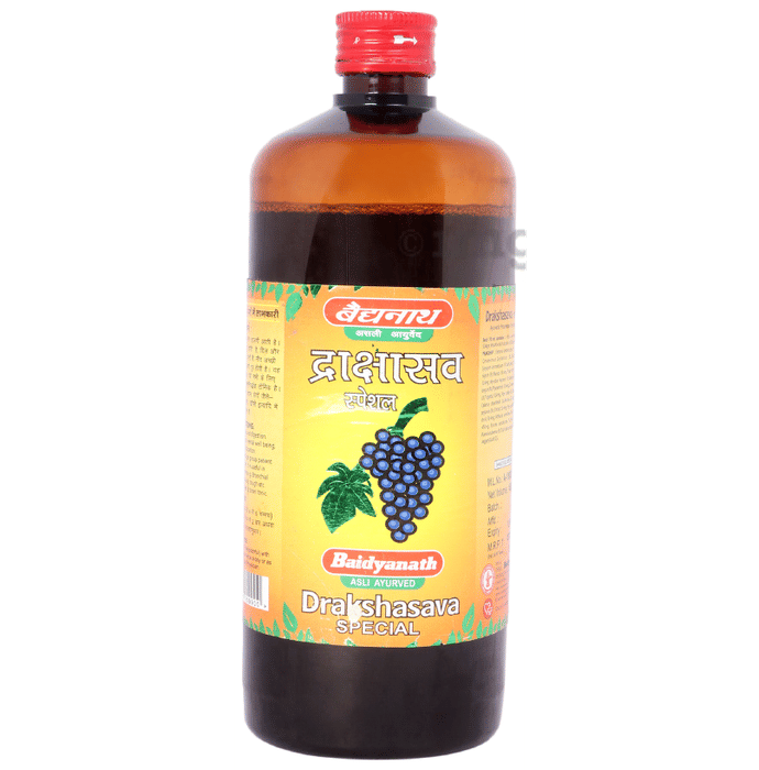 Baidyanath (Jhansi) Drakshasava Special is an Ayurvedic formulation that helps to improve digestive health. It acts like a heart and brain tonic and also supports respiratory health. It contains natural ingredients that do not cause any side effects.