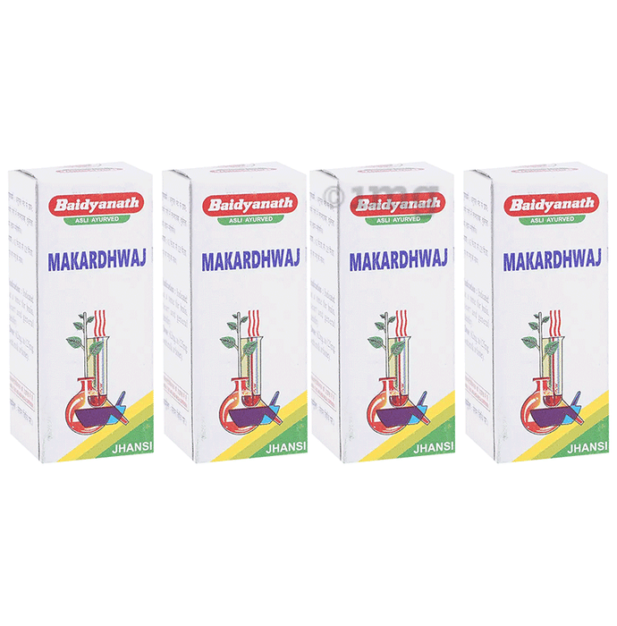 Baidyanath (Jhansi) Makardhwaj Powder (2.5 gm Each) is a safe ayurvedic formulation made with a unique combination of medicinal herbs and minerals. It acts as an aphrodisiac, rejuvenator and nervine tonic. It can also help retain loss of vigour and vitality due to natural ingredients.
