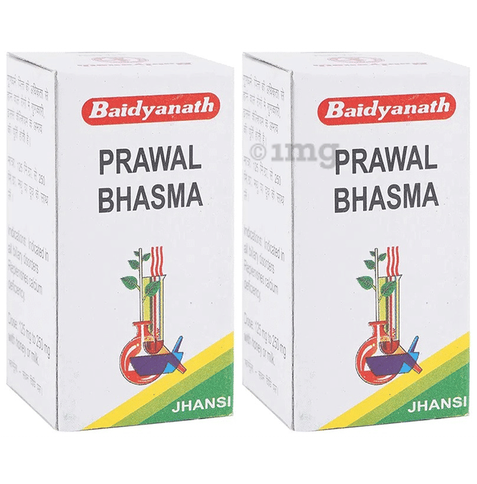 Baidyanath (Jhansi) Prawal Bhasma is an ayurvedic medicine prepared from coral. It can be beneficial for reducing cough, asthma, bleeding disorders etc. It can also improve digestive health, vision, immunity and skin health. This medicine should only be taken strictly under medical supervision.