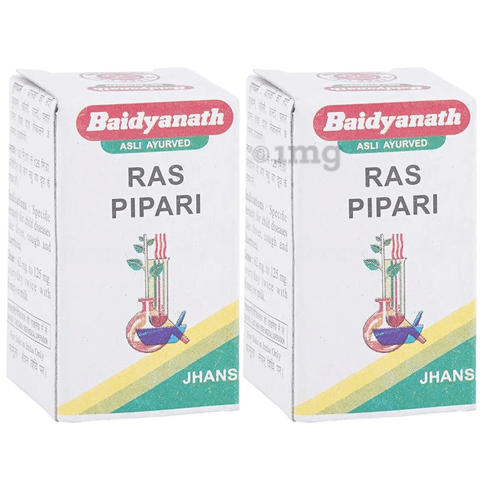 Baidyanath (Jhansi) Ras Pipari Powder is a herbo-mineral ayurvedic medicine. This medicine is indicated in dealing with various ailments in kids. The Anupan (fluid vehicle or drink with medicine) for this medicine is honey and ginger juice. In case of loose motion, this medicine should be given with jaiphal (grind jaiphal on stone with water). It is a strong antiemetic and analgesic. It also improves vata and kapha in the body.