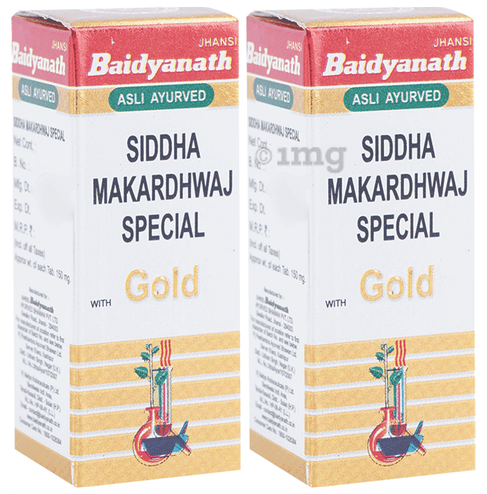 Baidyanath (Jhansi) Siddha Makardhwaj Special with Gold is an ayurvedic formulation that helps combat general debility and weakness in the body. It is fortified with Gold and Pearl which helps rejuvenate the body and helps in keeping you healthy and active.