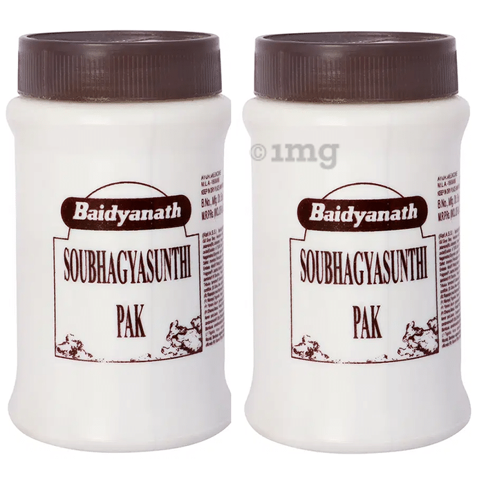 Baidyanath (Jhansi) Soubhagya Sunthi Pak Baidyanath Jhansi Saubhagya Sunthi Pak is an ayurvedic medicine. The main ingredient of this medicine is Shunthi or dry ginger powder. This medicine is a tonic that increases power and improves strength and longevity. Saubhagya Sunthi Pak improves digestive strength. The intake of both saubhagya sunthi Paka and Dashmoolarishta after childbirth helps restore the body to normal.