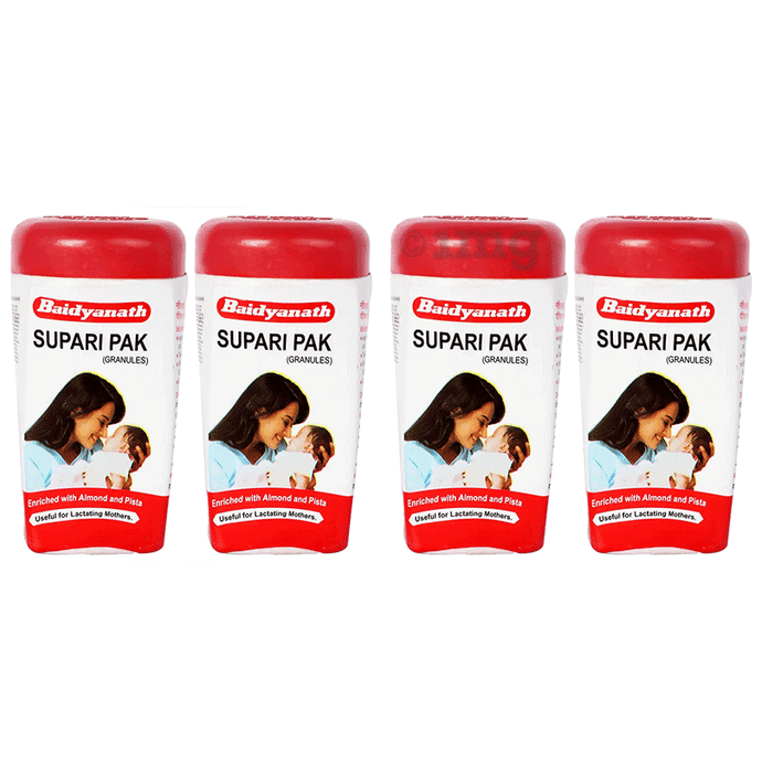 Baidyanath (Jhansi) Supari Pak Granules (100gm Each) act as an alternative and are indicated in leucorrhoea and used as a uterine tonic after delivery. Supari Pak is a balancing and revitalizing formula for the female reproductive system. It gently maintains the healthy production of female hormones and relieves congestion of the blood and abdominal area.