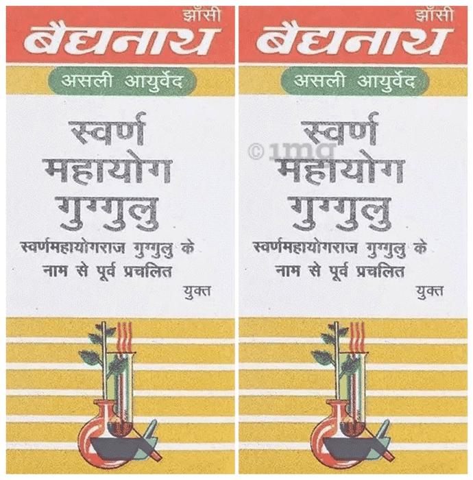 Baidyanath (Jhansi) Swarna Mahayog Guggulu Baidyanath (Jhansi) Swarna Mahayog Guggulu is an ayurvedic guggul preparation used for pain disorders, digestive ailments and breathing troubles. It also helps in reducing stiffness, pain and swelling in joint disorders. It is also used as supportive therapy in Ayurveda for a variety of disorders. It also relaxes muscle soreness and stiffness. Moreover, it may reduce inflammation in the case of arthritis.