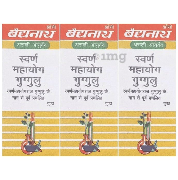 Baidyanath (Jhansi) Swarna Mahayog Guggulu Baidyanath (Jhansi) Swarna Mahayog Guggulu is an ayurvedic guggul preparation used for pain disorders, digestive ailments and breathing troubles. It also helps in reducing stiffness, pain and swelling in joint disorders. It is also used as supportive therapy in Ayurveda for a variety of disorders. It also relaxes muscle soreness and stiffness. Moreover, it may reduce inflammation in the case of arthritis.